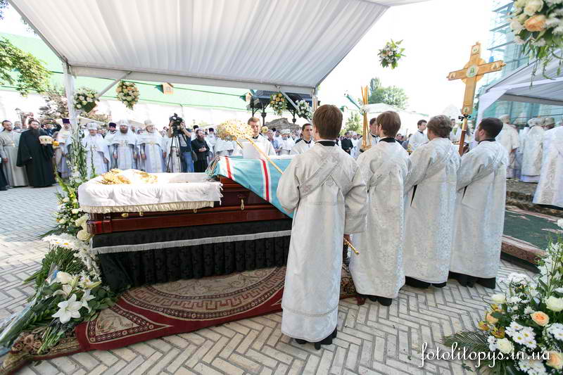 La 7 iulie, în piața din fața catedralei „Adormirea Maicii Domnului” a lavrei Pecerska din Kiev, unde credincioșii și-au luat rămas bun de la nou adormitul Preafericitul mitropolit al Kievului și al întregii Ucraine Vladimir, a fost oficiată slujba înmormântării – Dumnezeiasca liturghie și prohodul adormitului Întâistătător al Bisericii Ortodoxe din Ucraina. După slujba prohodului sicriul cu corpul Preafercitului stăpân a fost dus, într-o procesiune a drumului Crucii, la cimitirul frățesc al Lavrei și înmormântat alături de biserica „Nașterea Maicii Domnului” în Peșterile de Departe.