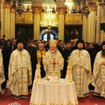În cadrul Sfintei Liturghii, părintele arhimandrit Timotei Aioanei, Mare Eclesiarh al Catedralei patriarhale şi Exarh cultural al Arhiepiscopiei Bucureştilor a rostit rugăciunea de mulţumire adusă lui Dumnezeu pentru binefacerile revărsate asupra Preafericitului Părinte Daniel în cel de-al șaselea an de slujire patriarhală.